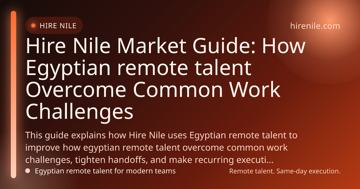 This guide explains how Hire Nile uses Egyptian remote talent to improve managing multiple clients as an egyptian remote talent: best practices, tighten handoffs, and make recurring execution easier to trust across distributed teams.