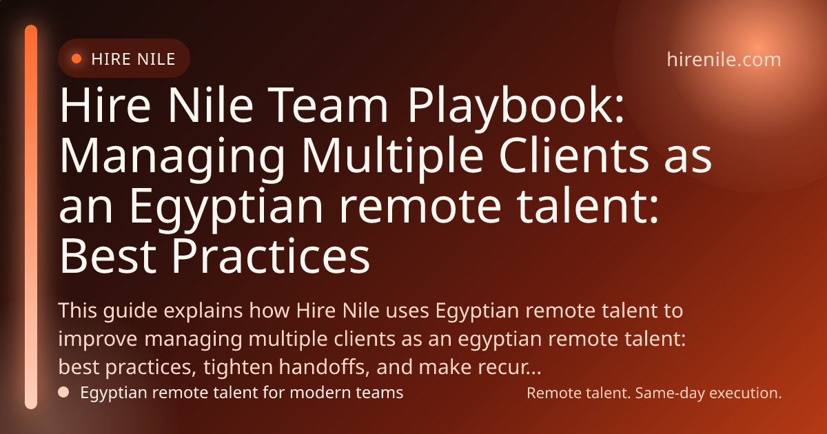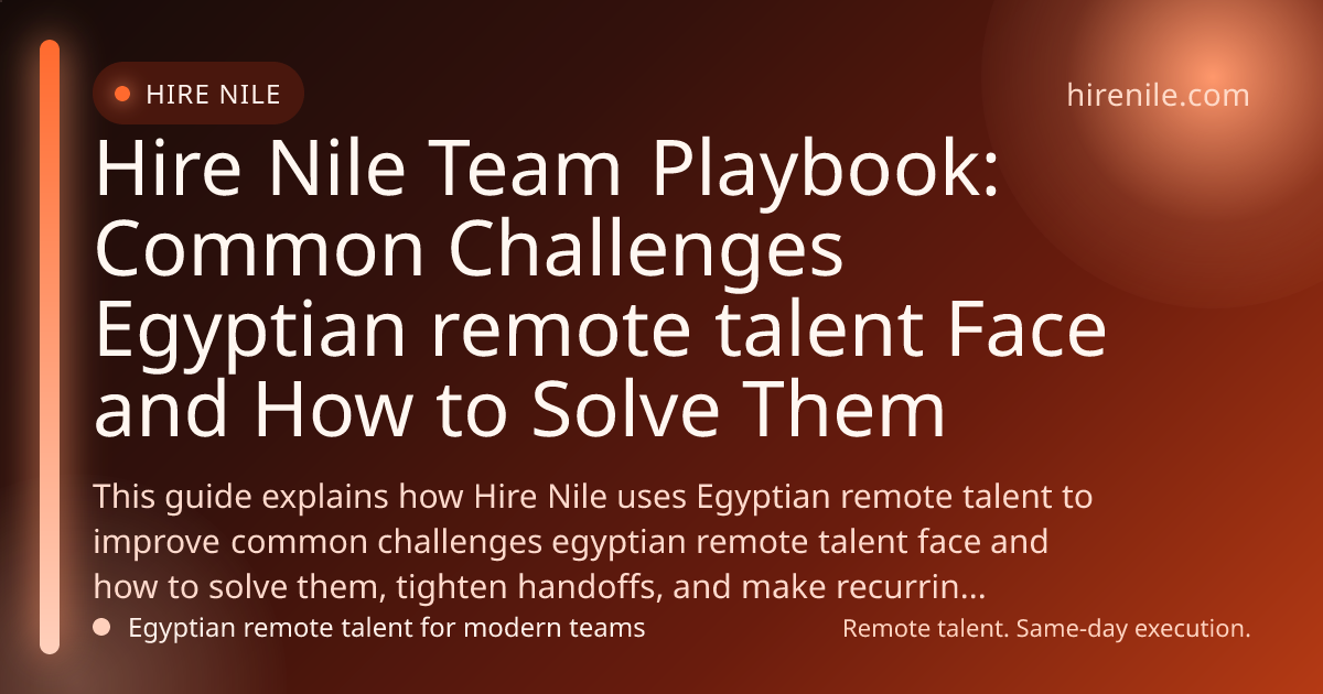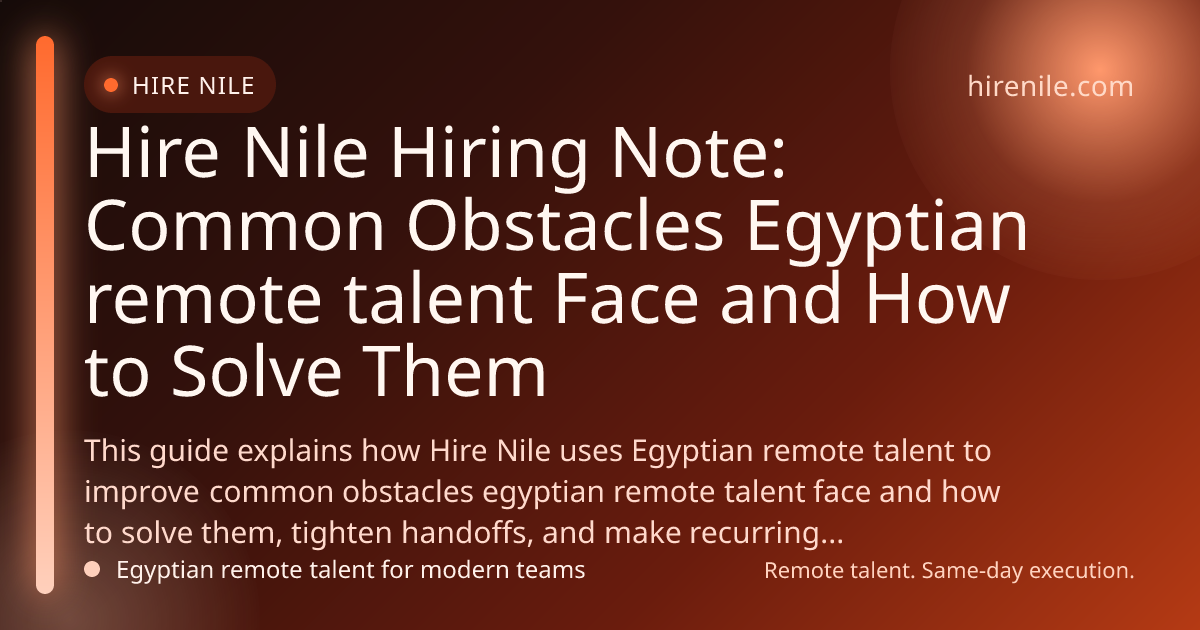This guide explains how Hire Nile uses Egyptian remote talent to improve remote work: a permanent paradigm shift!, tighten handoffs, and make recurring execution easier to trust across distributed teams.